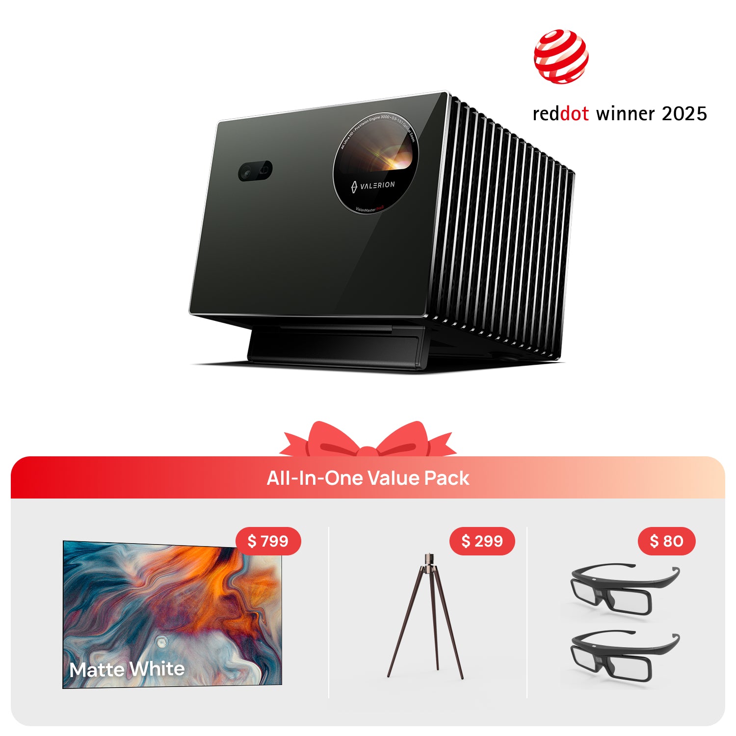 VisionMaster Pro2 + White Screen + Tripod Stand + 3D Glasses